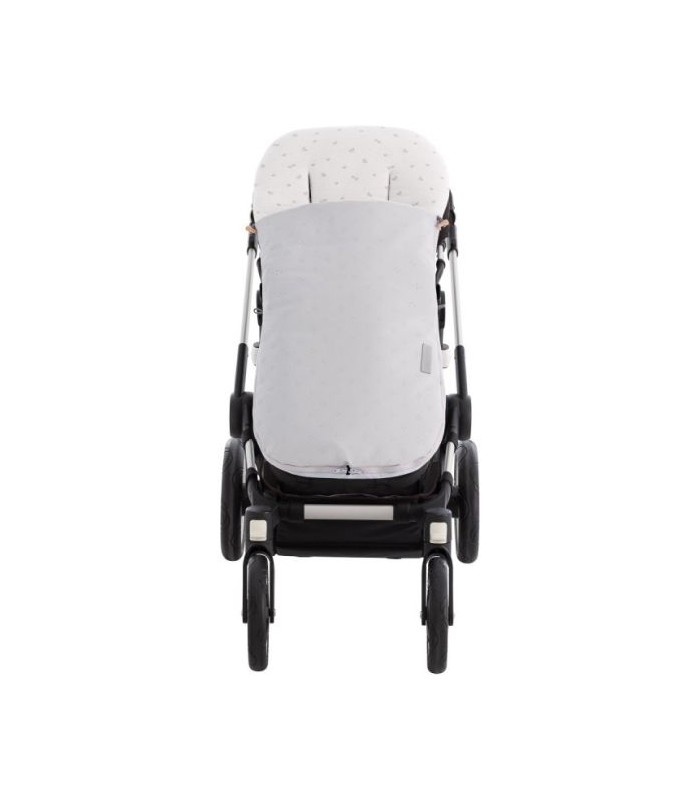 Este saco es completamente desenfundable, lo que facilita el lavado. Gracias a sus cremalleras laterales con doble cursor, es posible abrir el saco por completo, lo que permite utilizar la parte inferior como colchoneta para la silla de paseo. Además, cuenta con una platabanda trasera que asegura un ajuste firme a la silla, evitando que se mueva durante el paseo.