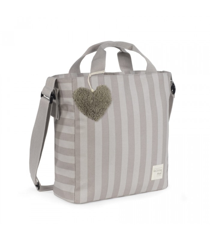 Bolso cambiador Sintra de raya para silla de paseo que incluye cambiador para bebe. Bolsa canastilla muy ligera, resistente y de gran capacidad para llevar todo lo necesario para el paseo del bebe. Incluye un cambiador a juego con el bolso de maternidad. Tiene multiples bolsillos para poder tener todo ordenado. En el interior incopora un bolsillo plastificado para la ropa húmeda, un bolsillo térmico para biberones y dos bolsillos para lo que necesites tener más a mano. Incluye un charm en forma de corazón donde puedes bordar el nombre de tu bebé para personalizar el bolso. El bolso incluye 2 asas cortas ajustables que facilitan la colocación en cualquier modelo de silla de paseo
