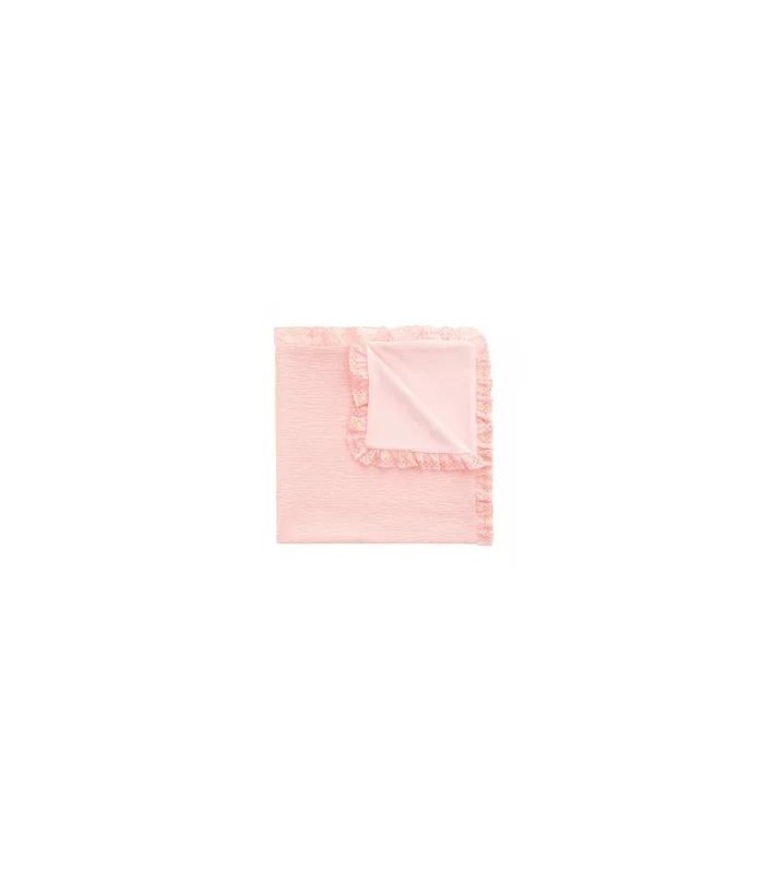 Fabricada con bambula de algodón estampado y punto tricot suave en el reverso, con un encantador volante fruncido. Tamaño: 65 cm x 65 cm. . Fabricada con tejido tipo nido coordinado con punto algodón en su interior.