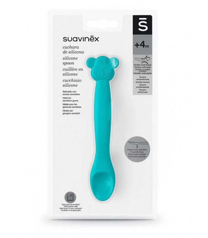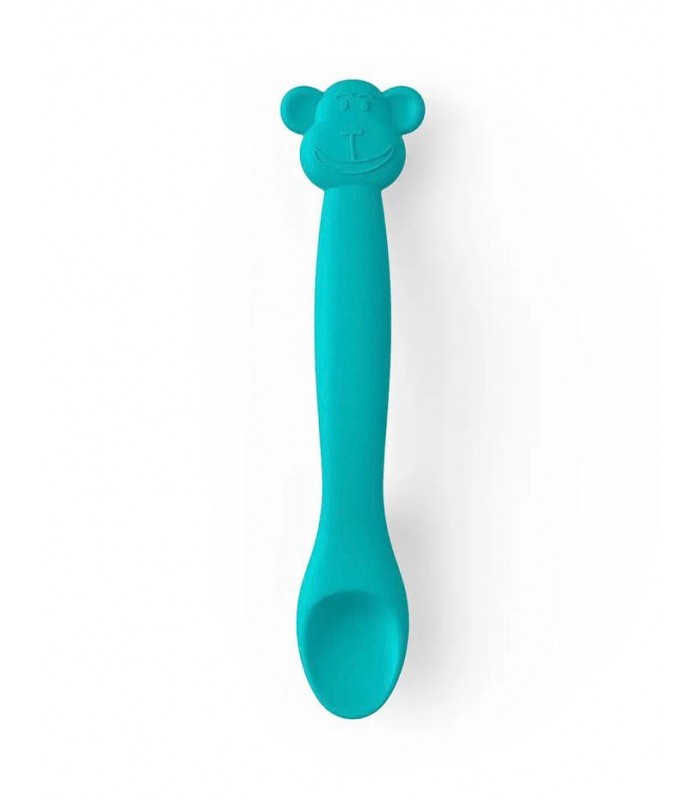 Cuchara flexible con forma de mono en color verde de la marca Suavinex.