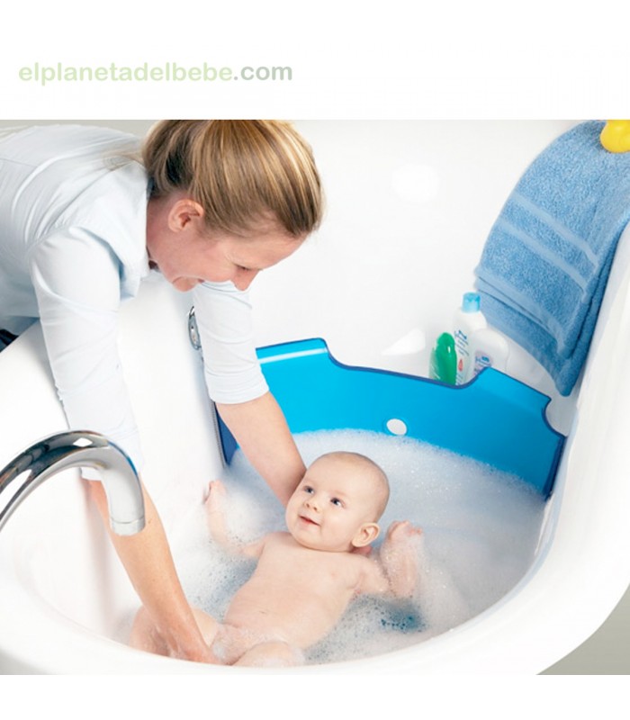 Presa y barrera para la bañera familiar, que permite ahorrar agua y hacer el baño más seguro.