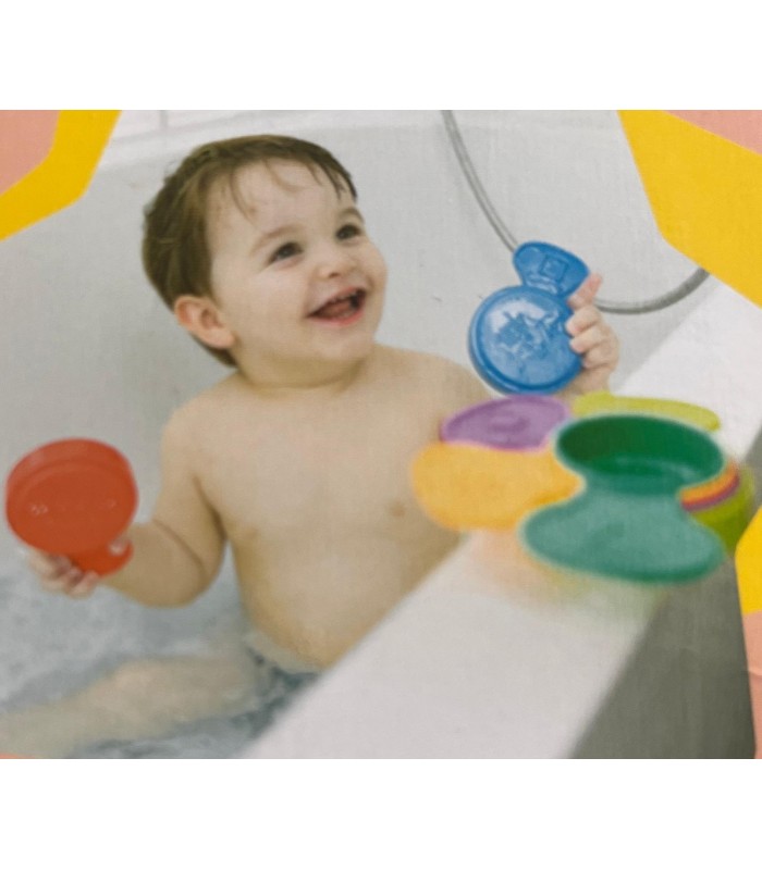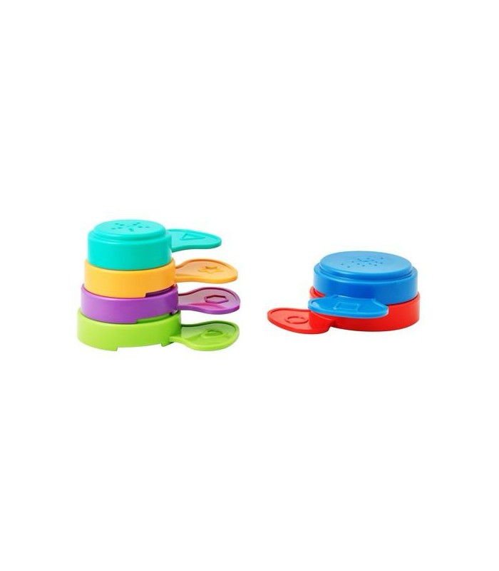 Seis piezas pertoradas para jugar en el agua, que se apilan para construir una torre! Educativo y ludico.