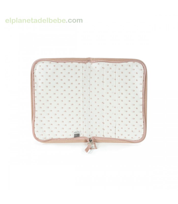 Esta funda portadocumentos está elaborada en tela estampada, cuenta con múltiples bolsillos plastificados distribuidos en ambos lado para organizar mejor todo. También tiene un práctico cierre de cremallera para guardar seguro el libro de Nacimiento y todos los documentos de tu bebé.