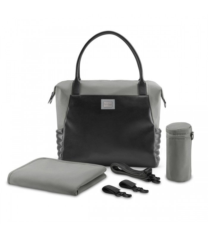El bolso shopper de la línea Platinum de CYBEX viene con un portabiberones térmico extraíble, un cambiador y un compartimento para guardar artículos húmedos.